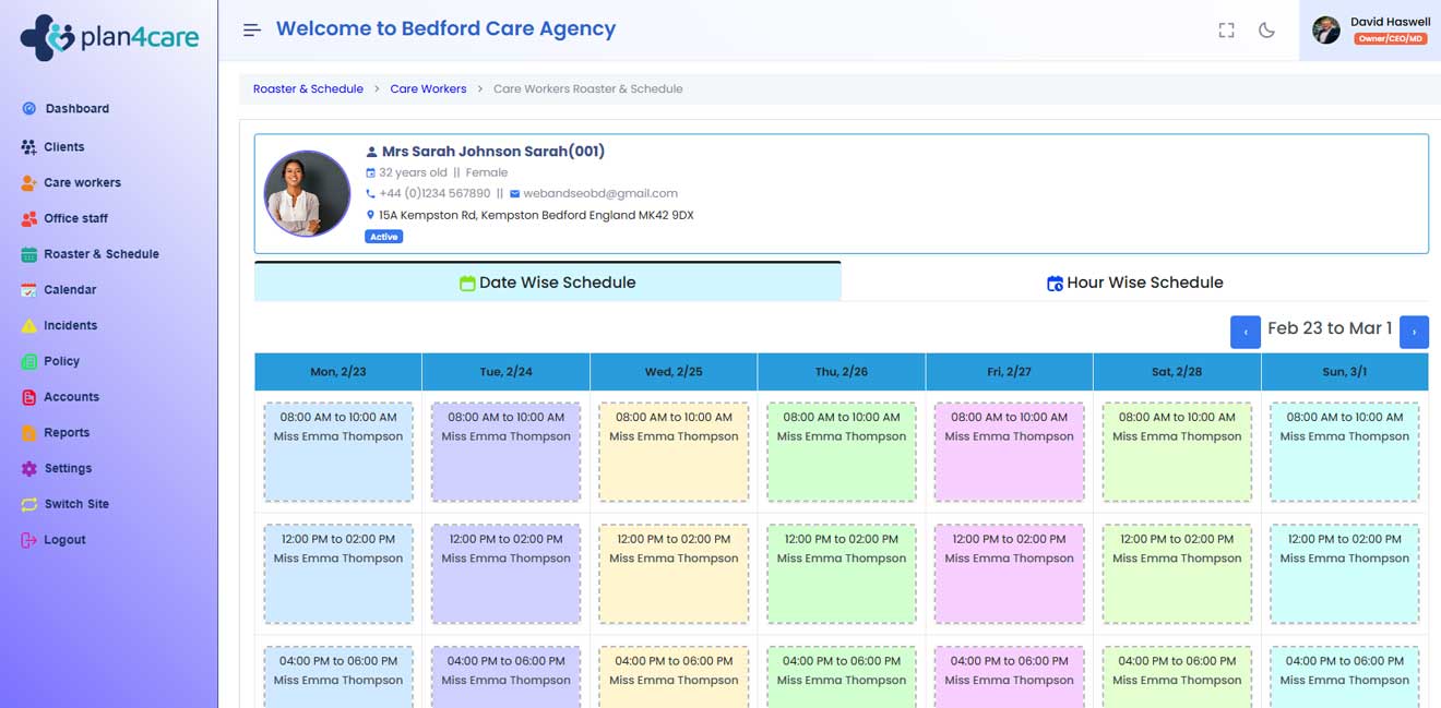 Create schedules effortlessly with our intuitive tool, offering care staff a clear plan for every shift with easy adjustments.